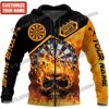 Customized Name Darts And Fire 3D Printed Fashion Men’s Zipper Hoodie Autumn Streetwear Unisex Casual Zip Up Hoodies HW73