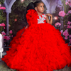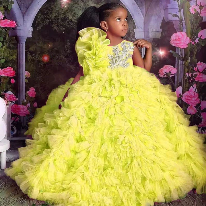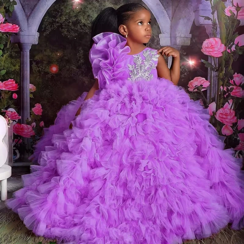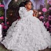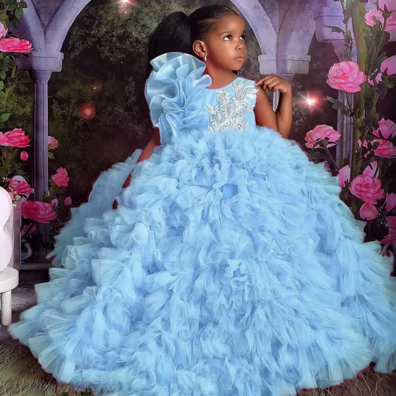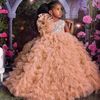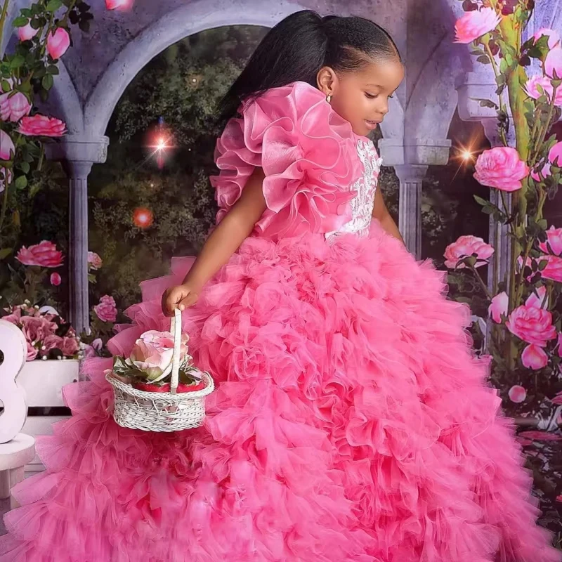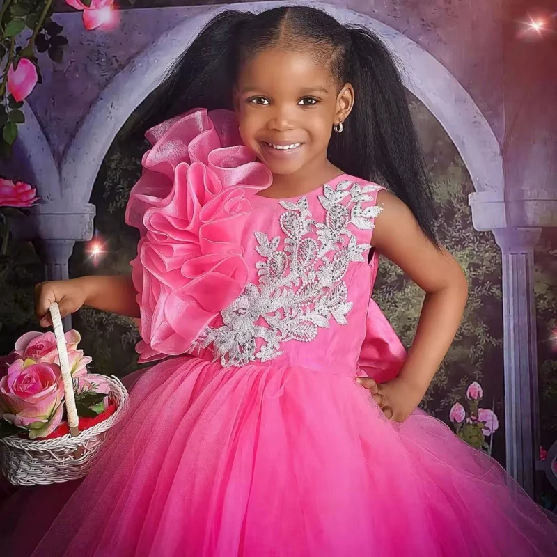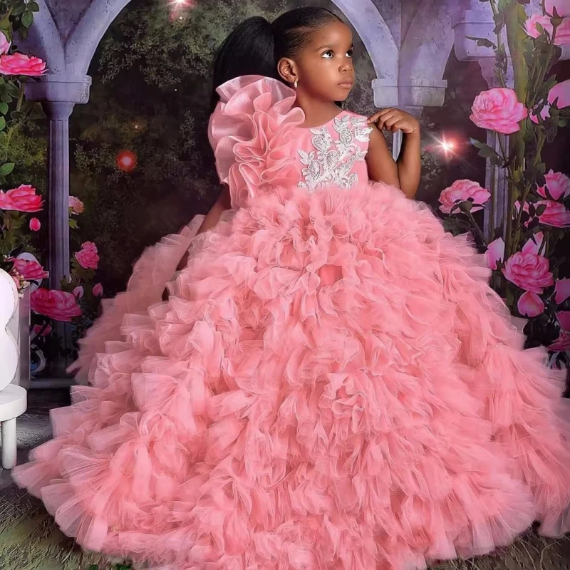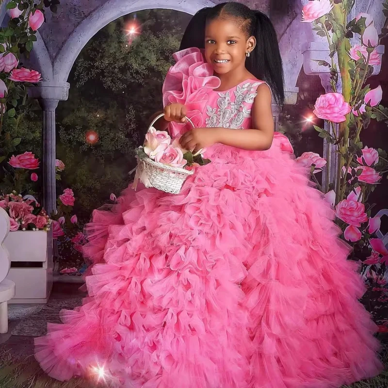 Customized Rose Pink Flower Girl Dresses Tulle Puffy White Embroidery Sleeveless For Wedding Birthday Prom Holy Communion Gowns