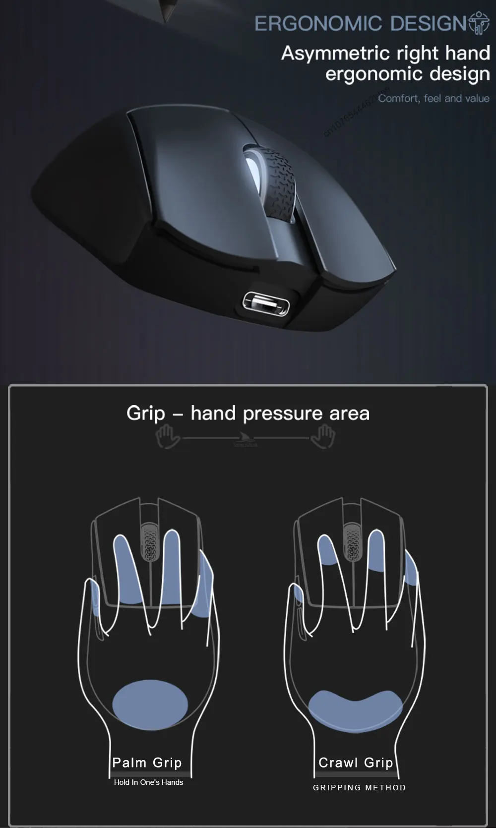 It is the second time to buy an Ergo-shaped mouse, but this time I like the feeling that it fits in my hand and I use it well compared to the double-sided target mouse. What I was a little concerned about was that I thought it was up to 8K, but it was up to 4K. (I don't feel good here, so I think it's better to write at least the response schedule), but originally, I have bought it for commercial use, not for gaming, there is no problem because the 8k mouse still has a bad battery, so I thought that I would not use it even if I bought it. If you are not looking for a lightweight mouse, it is not special heavy, so it is difficult to leave fingerprints and it is recommended.