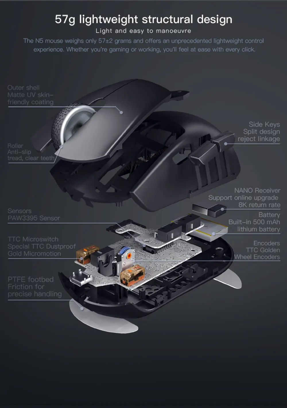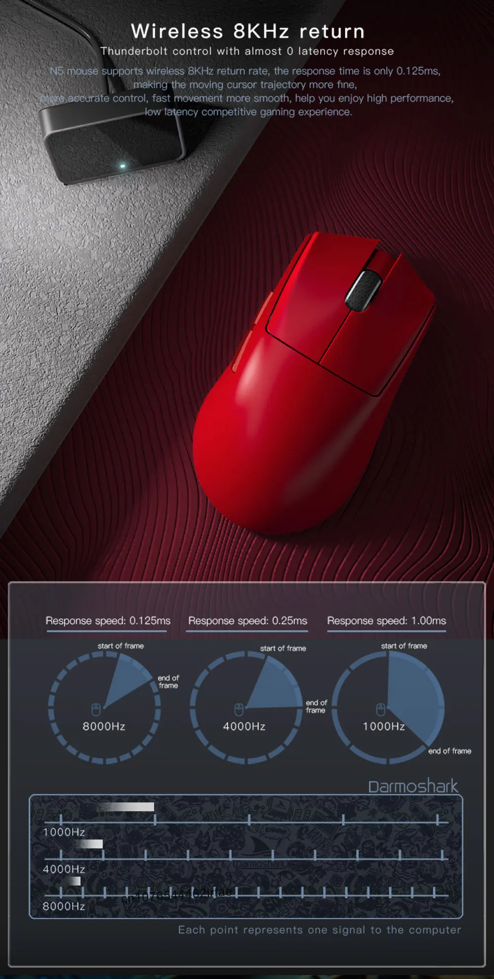 Darmoshark N5 4K/ 8K Gaming Esports Mouse Wireless Bluetooth 26000DPI Optical PAM3395 Computer Mouse For Laptop PC