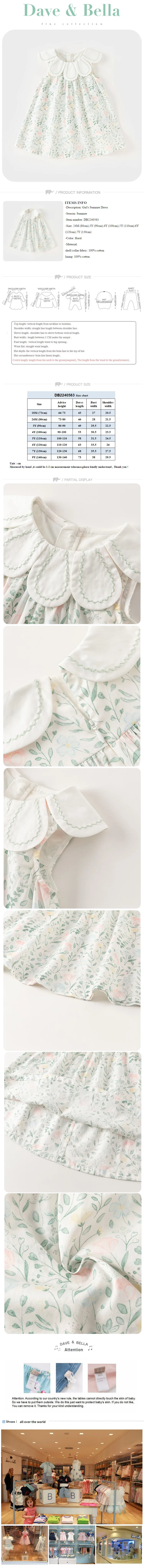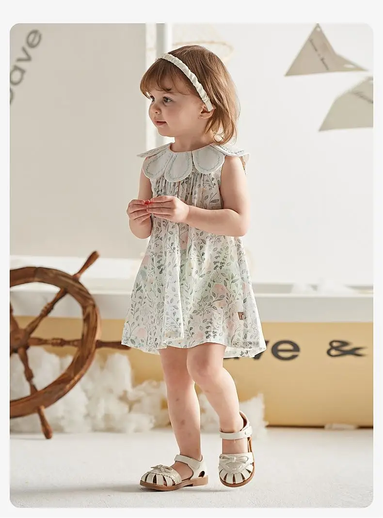 Dave Bella Girl’s Princess Dress 2025 New Summer Children’s Baby Sleeveless Floral Cute Sweet Party Outdoor DB2240563