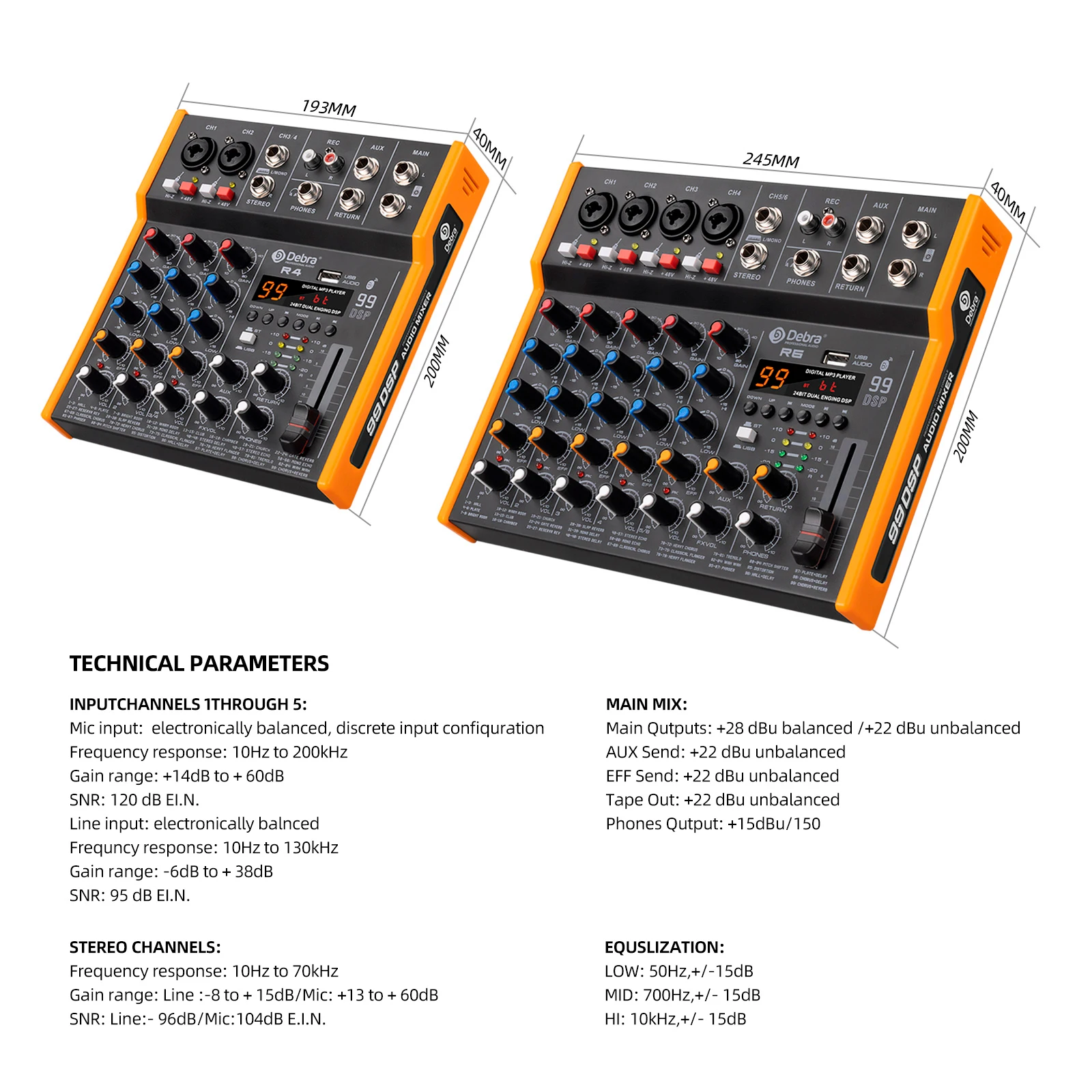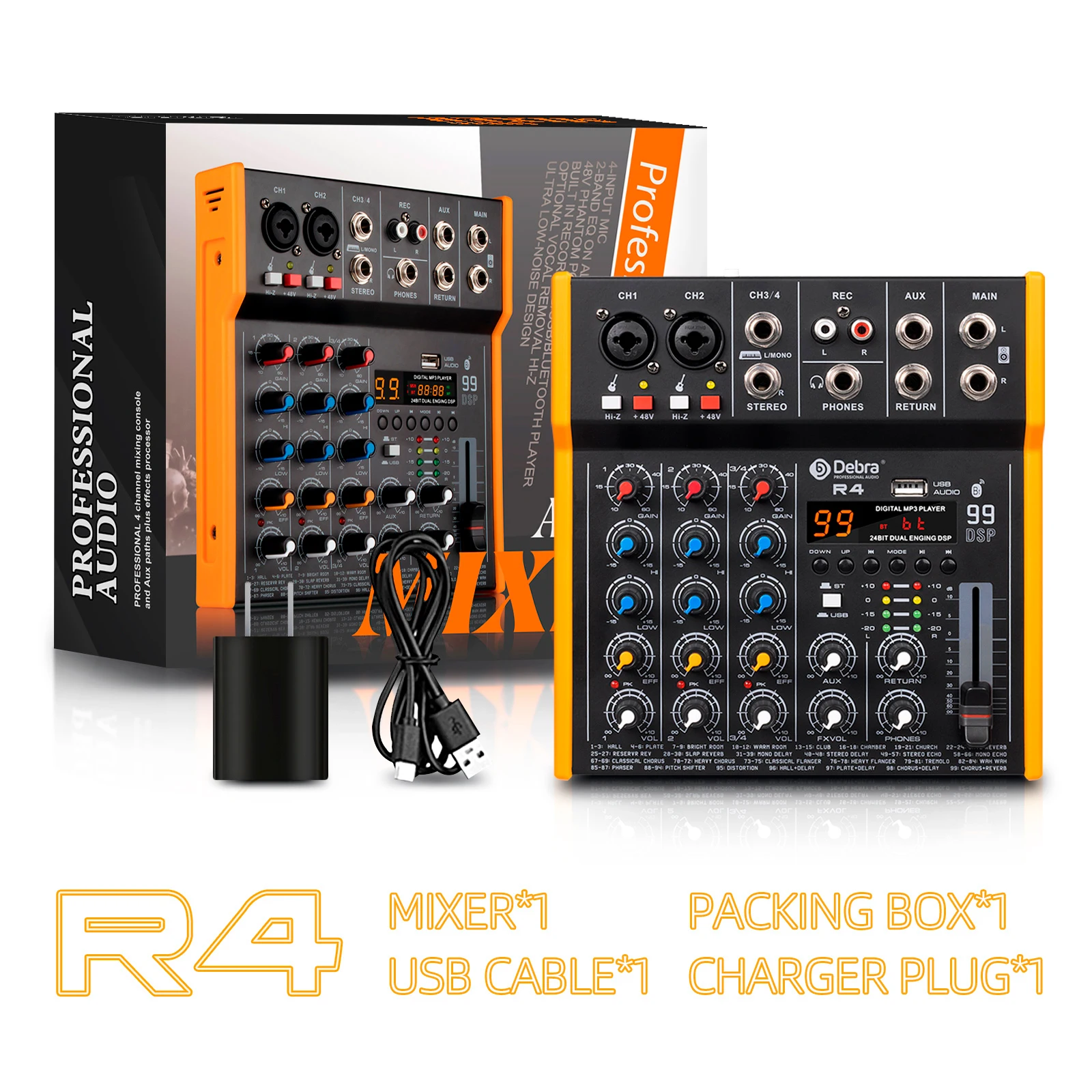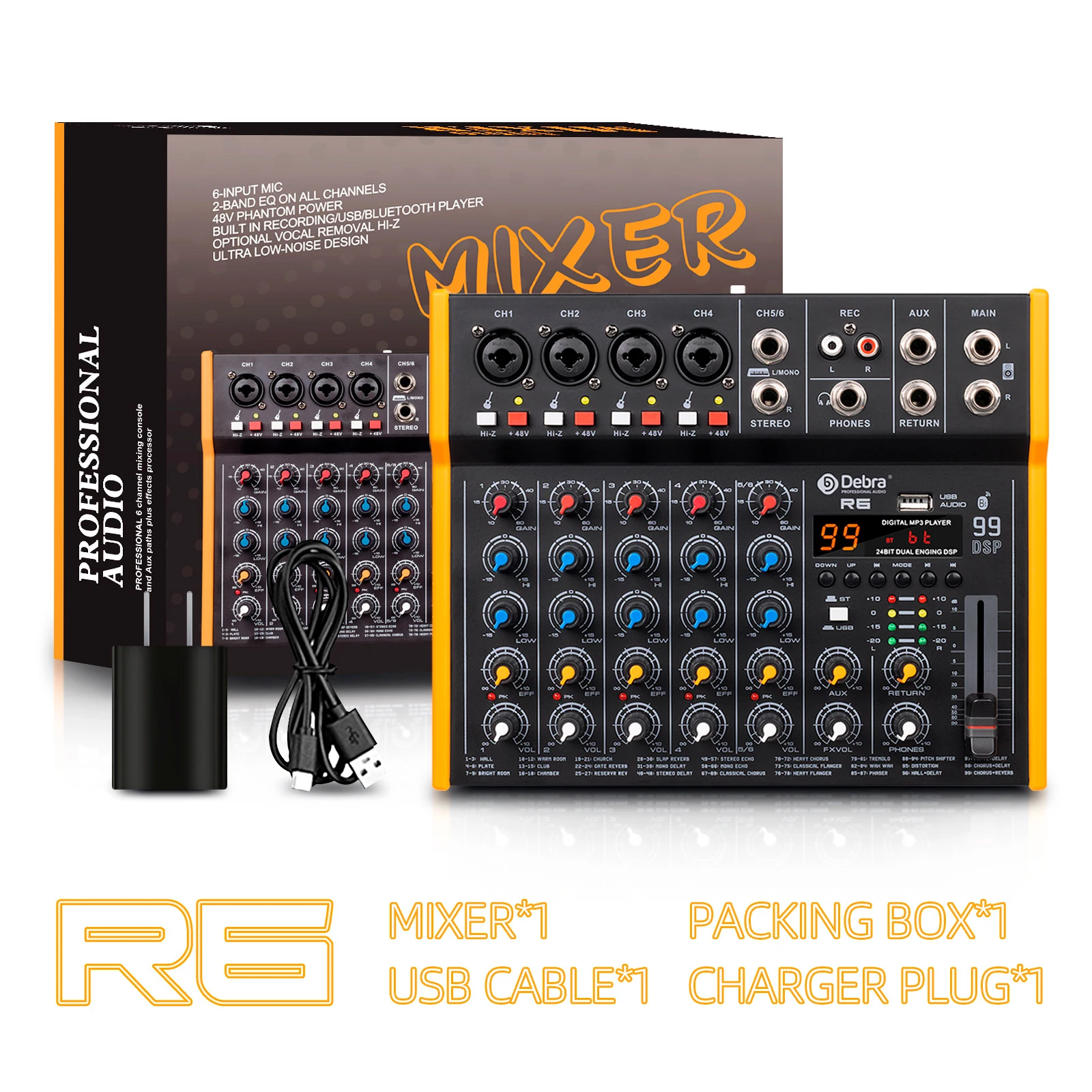 Debra R4/R6 Multi-functional Audio Mixer 99DSP Stereo DJ Controller 6.5 mm Output TypeC Sound Card For Live Mixing PC Recording