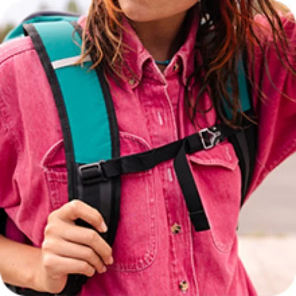 - Adjustable, padded backpack straps & sternum strap