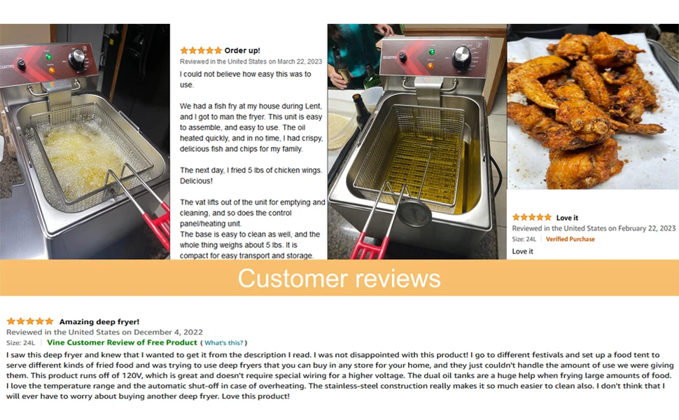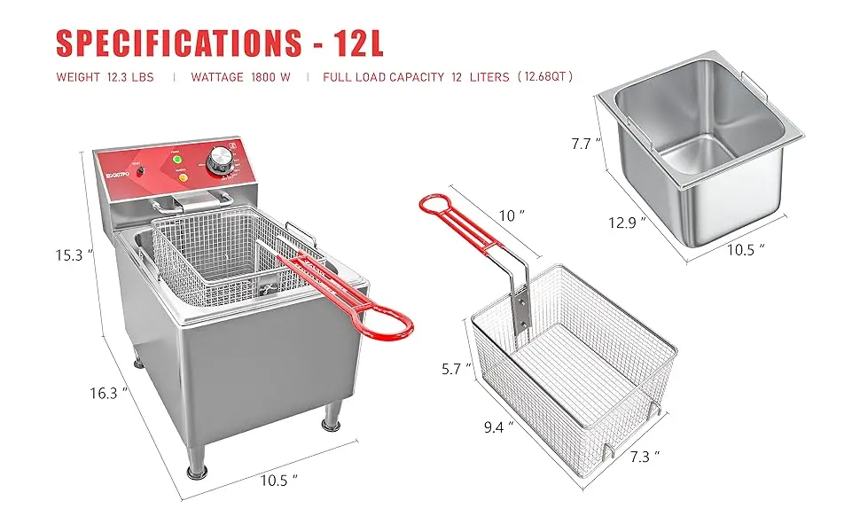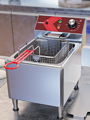 This High wattage countertop fryer provides greater heating efficiency for faster cooking and a higher output
