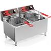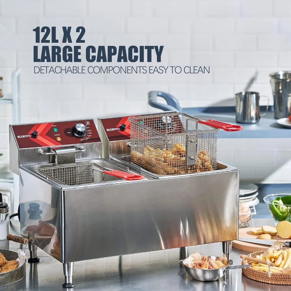 - PROFESSIONAL DEEP FRYER -This stainless steel deep fryer with two oil tanks which is durable and comes with two handles let you easily lift the tank out of the fryer to empty the oil and clean the tank. Perfect for commercial uses, such as restaurants, supermarkets, fast food stands, snack bars, food truck and parties. Suitable for buffalo wings, chicken, dumplings, egg rolls, shrimp rolls, mozzarella sticks, jalapeno poppers