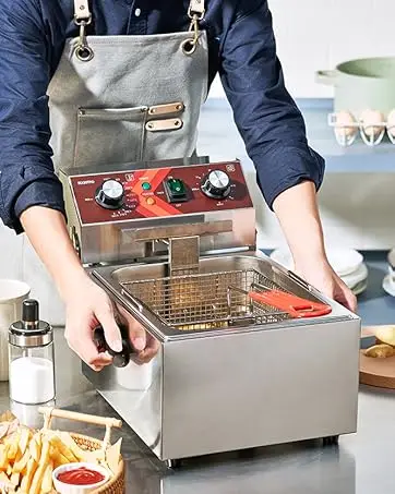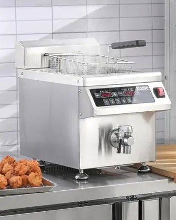This High wattage countertop fryer provides greater heating efficiency for faster cooking and a higher output