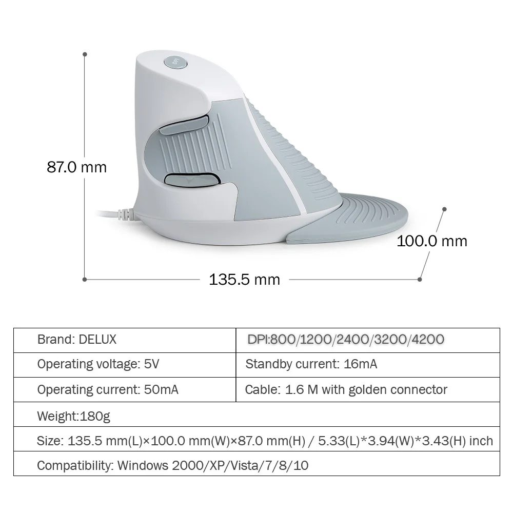 Delux brand offers a selection of vertical mice tailored to suit your hand shape and size.