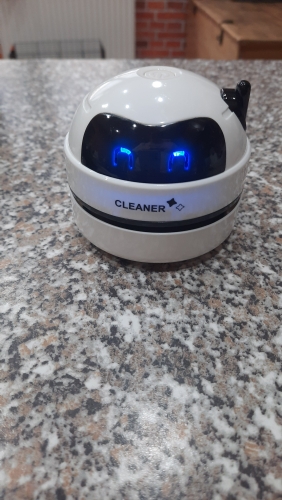 Works very well, it replaces another table vacuum cleaner that worked with batteries… and the price of batteries is very expensive so this rechargeable battery version is very well and very efficient.