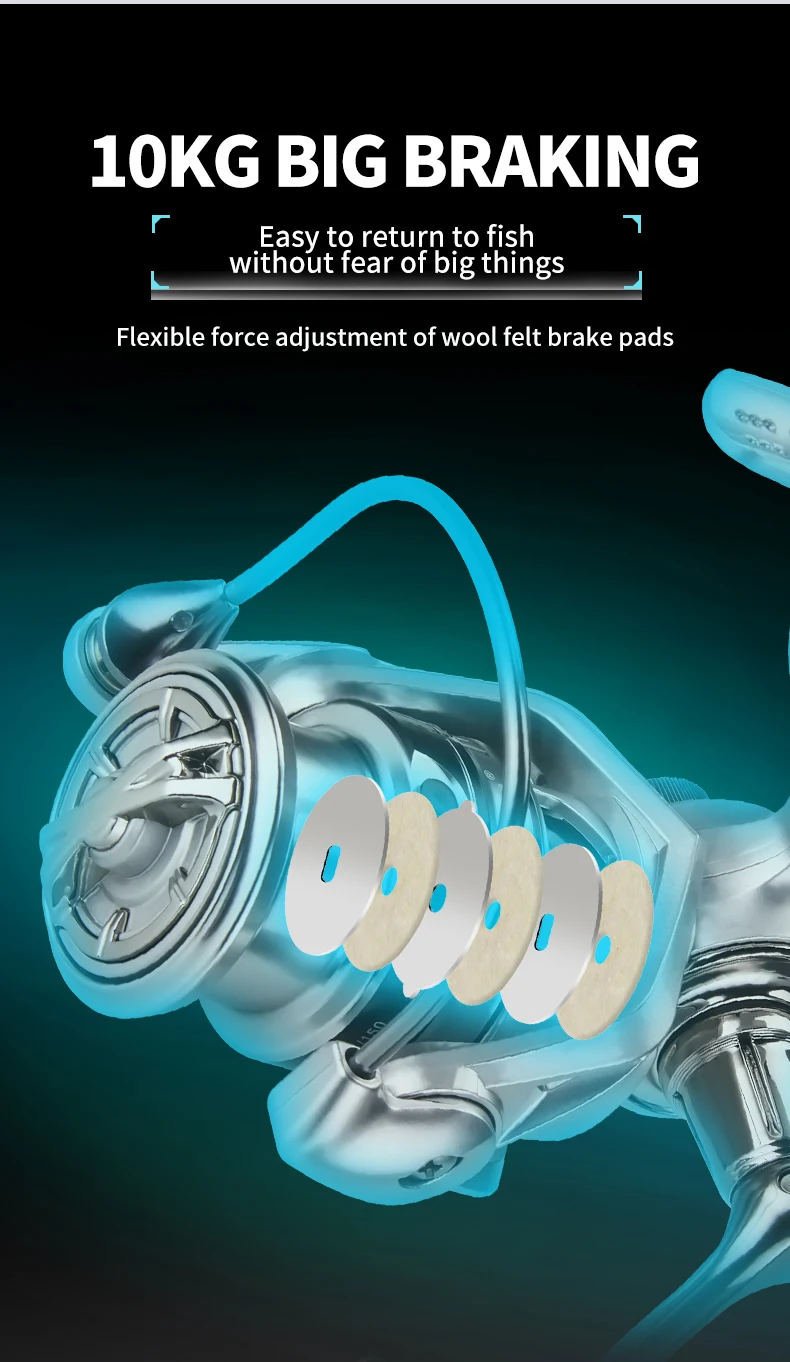 1. 8KG super large braking force, easy to return to fish, fearless of large objects; Wool felt brake pads, flexible adjustment of unloading force; Durable and sturdy, with high-strength brakes