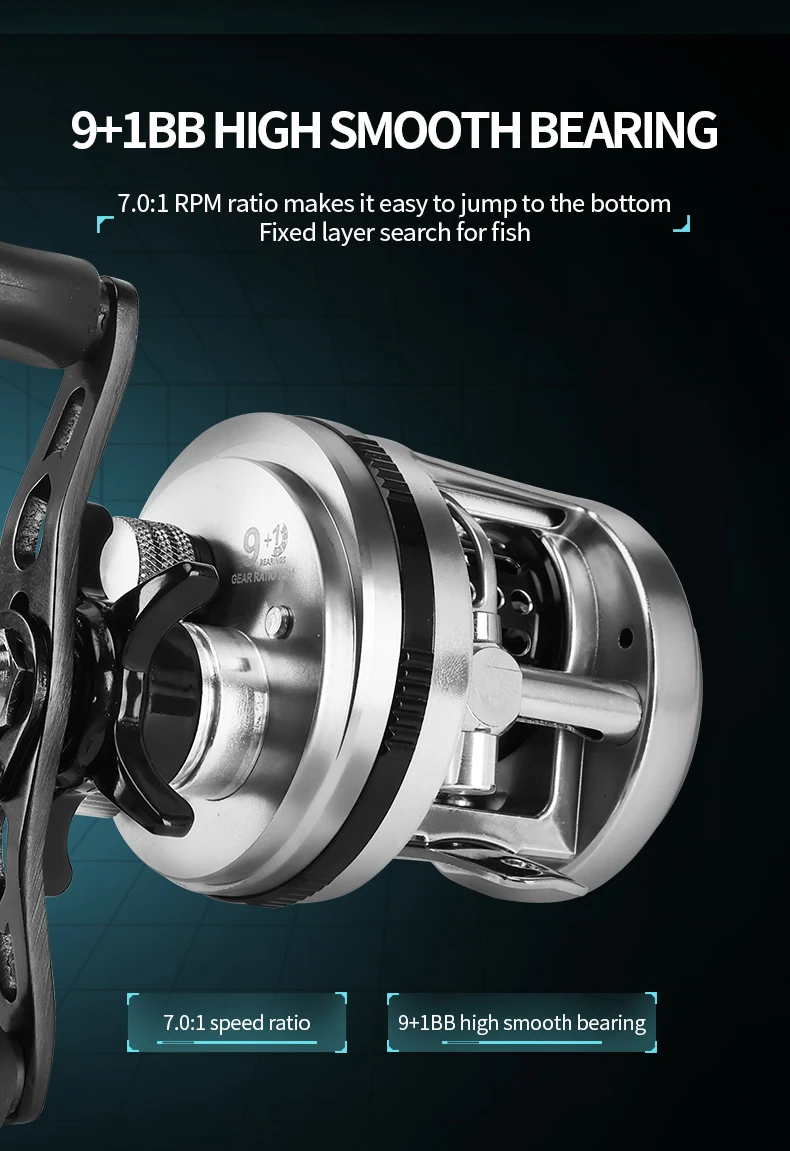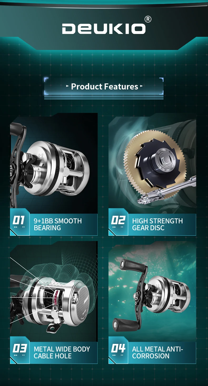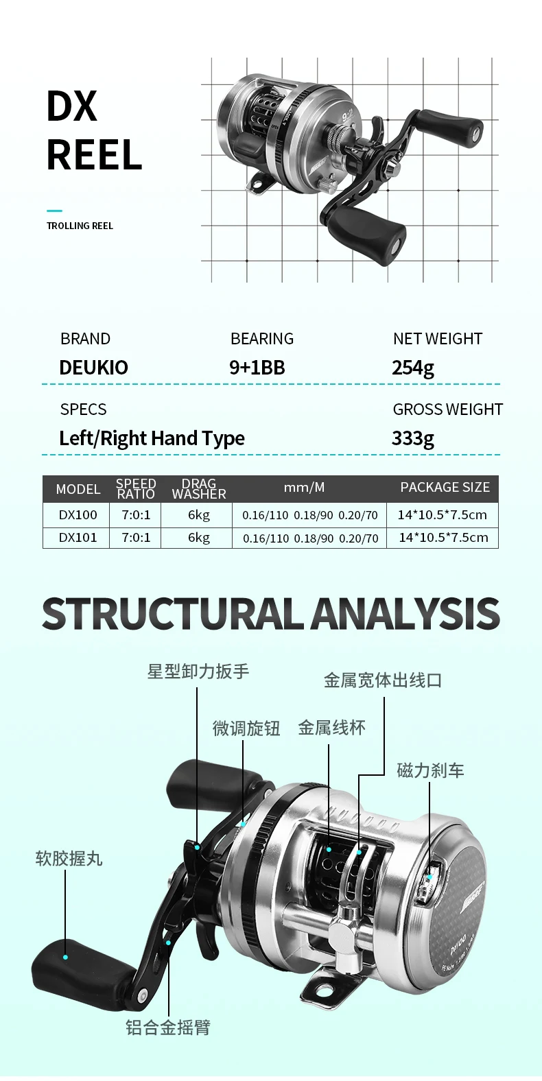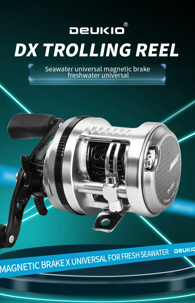 DEUKIO New Trolling Drum Fishing Reels Left/Right Hand 9+1BB Trolling Reel Max Drag 6kg Pesca Offshore Fishing