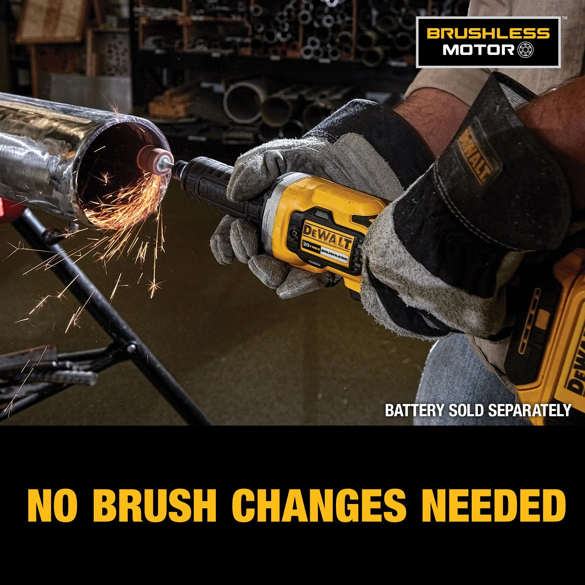 ●The 20V MAX* Cordless Die Grinder delivers 500 MWO with the brushless motor and uses the same battery and charger as your other 20V MAX* tools. Perform a variety of grinding applications with a variable speed range of up to 25,000 RPM. For ease of use, the handle can be grasped multiple ways with the dual-position rocker switch.