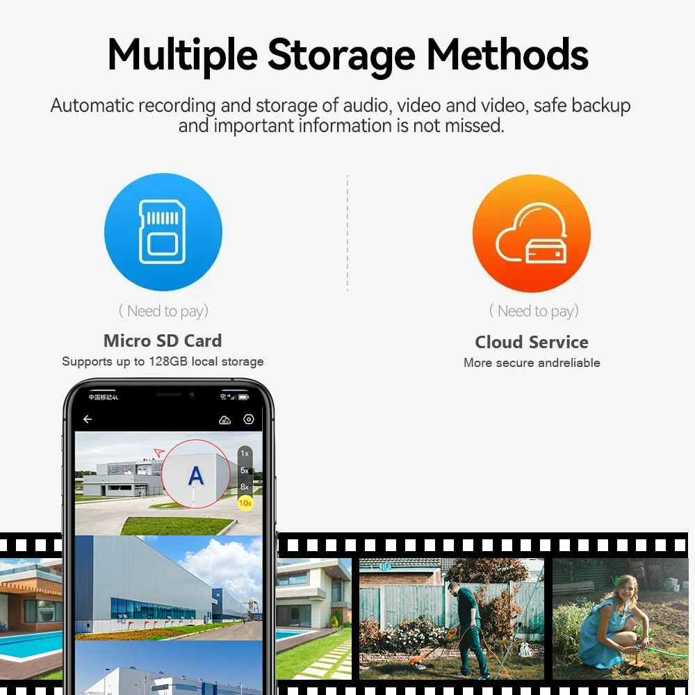 –Difang security cameras wireless outdoor support two storage options – SD card local storage (not included), up to 128GB without monthly fees; or cloud storage with a free 30-day trial,
