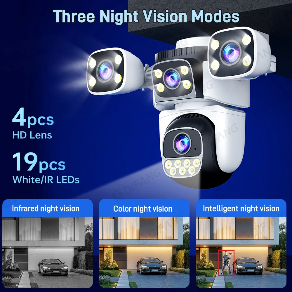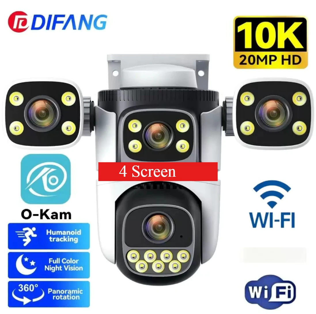 DIFANG New 10K 20MP 4 Screen WiFi6 Camera 4 Lens CCTV Surveillance Auto Tracking 5X Zoom PTZ Mini Street Video Camera OKam