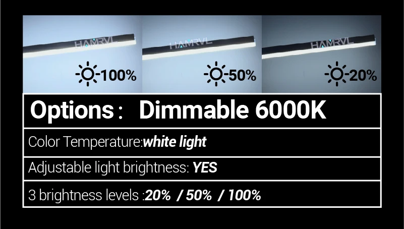 Dimmable: three-level dimming 20% 50% 100%The light tube comes with a dimming chip, which does not require an additional dimmer