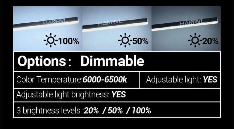 Dimmable: three-level dimming 20% 50% 100%The light tube comes with a dimming chip, which does not require an additional dimmer