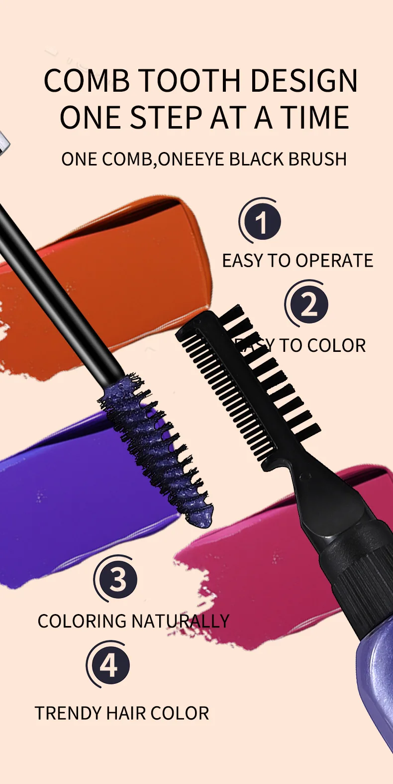 【Change Hair Color In Minutes And Easy To Use】The comb applicators make it quick and easy to put dazzling colors into your hair. Your hair will be supple and natural, not stiff and sticky. Even kids are able to use them on their own super easily. Twist to open and use without messy hands. It works beautifully and smoothly on the hair.