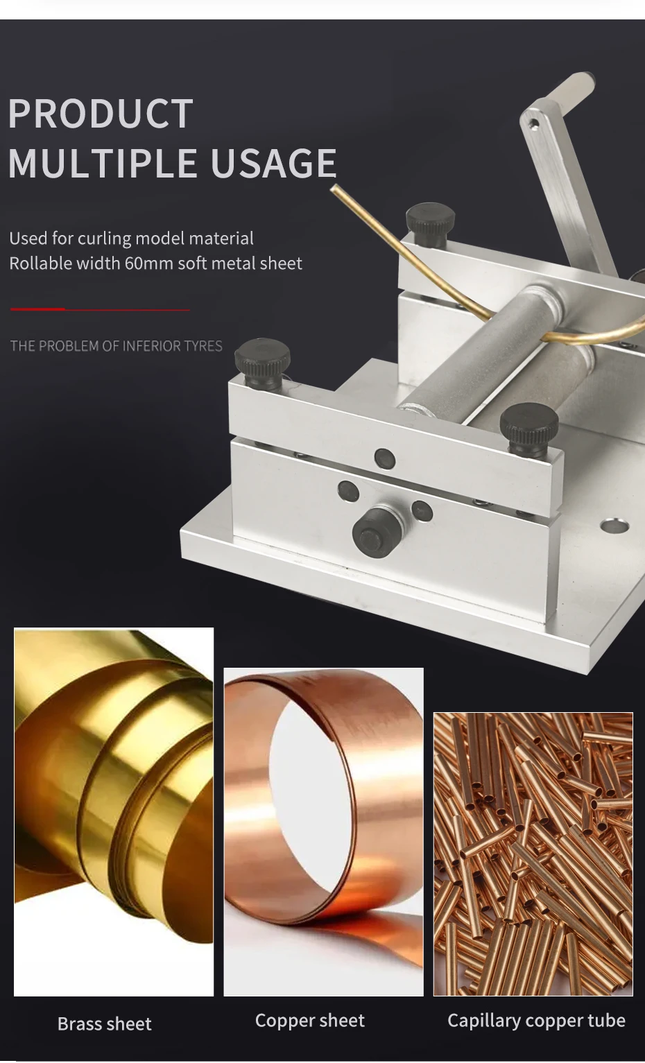Application: Mainly used for curling model materials, soft metal sheets with a width of 60mm can be rolled