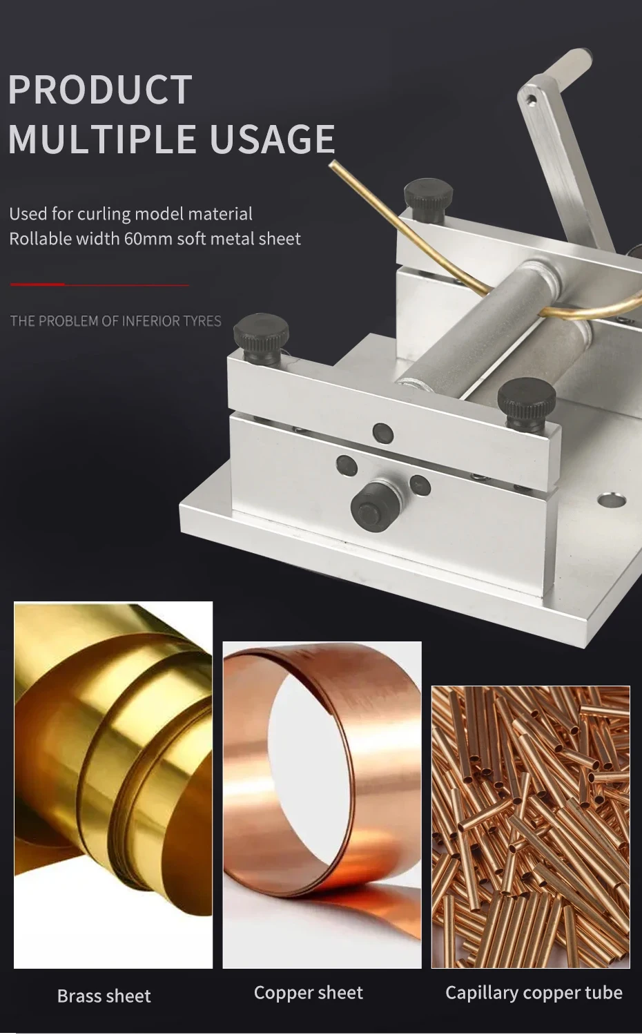 Application: Mainly used for curling model materials, soft metal sheets with a width of 60mm can be rolled
