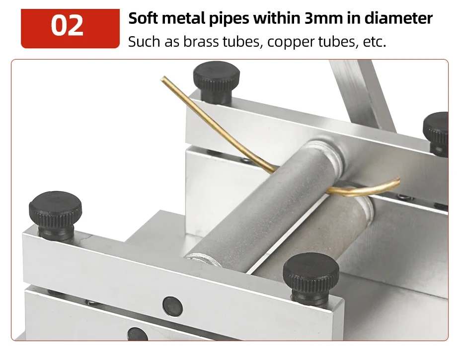 It can roll soft metal pipes with an inner diameter of 3mm, such as brass pipes, red copper pipes, capillary copper pipes, etc.