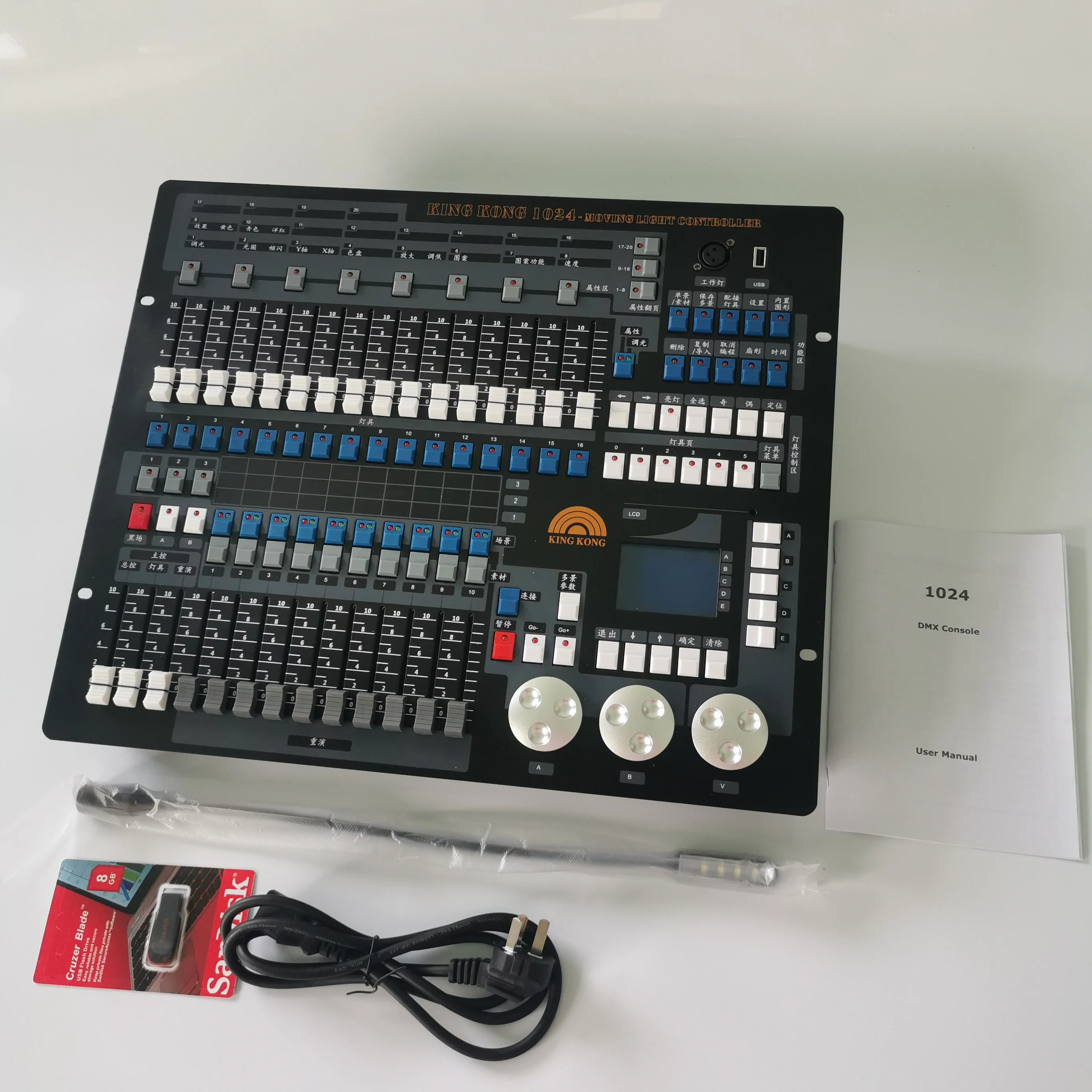 512/1990 standard, maximum 1024 control channels, optically isolated signal output, maximum control of 96 scanners or 96 dimming, using pearl lamp library.