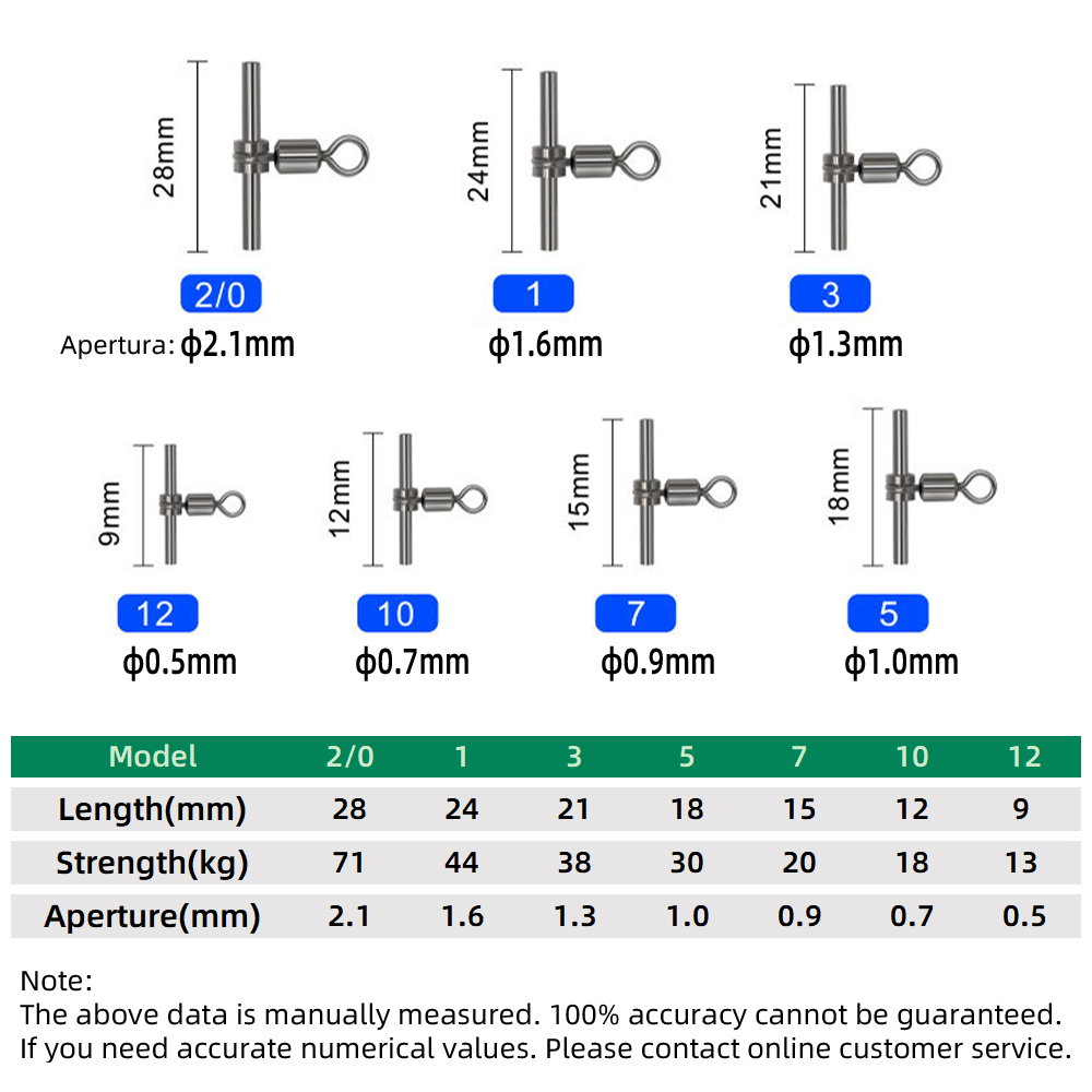 DNDYUJU 10-20X Fishing Rolling Swivel Sleeves 3-way Fishing Swivels Crane Ball Bearing Swivel Cross Line Fishing Connetor Tackle