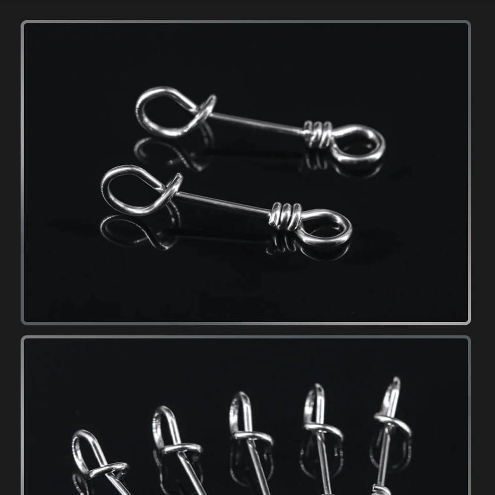DNDYUJU 50/100pcs Strengthen Stainless Steel Quick Lock Snap Spring Clamp Buckle Lure Drop Rigs Connector for Fishing Accessories