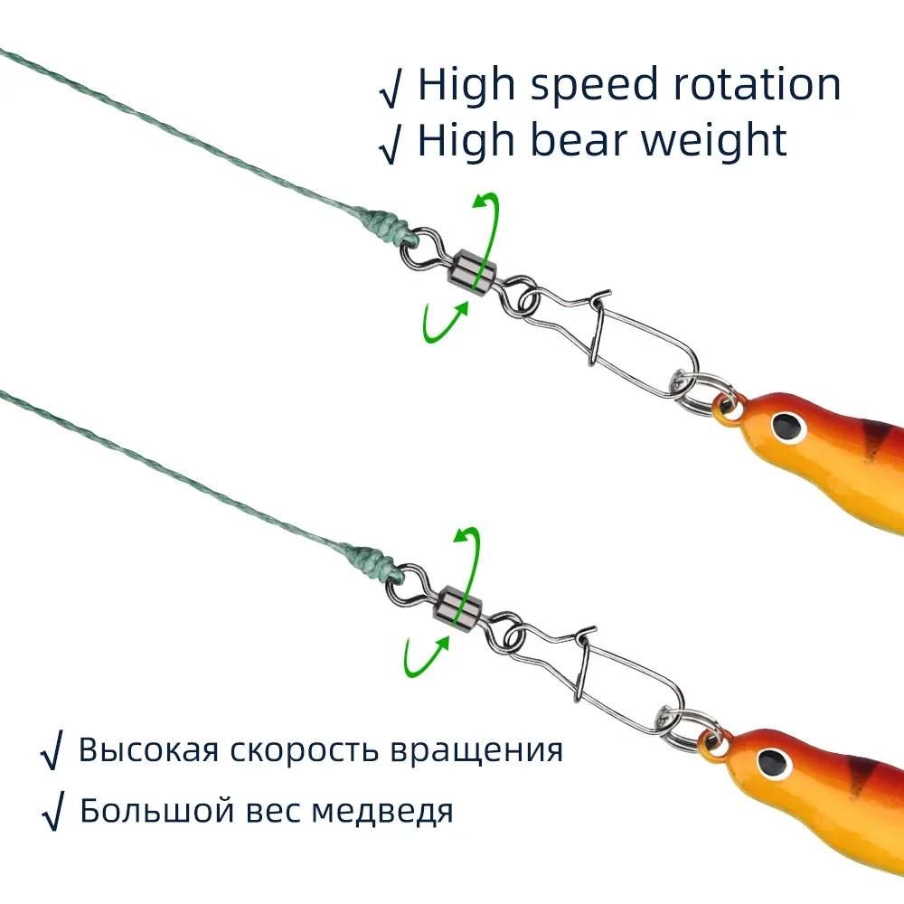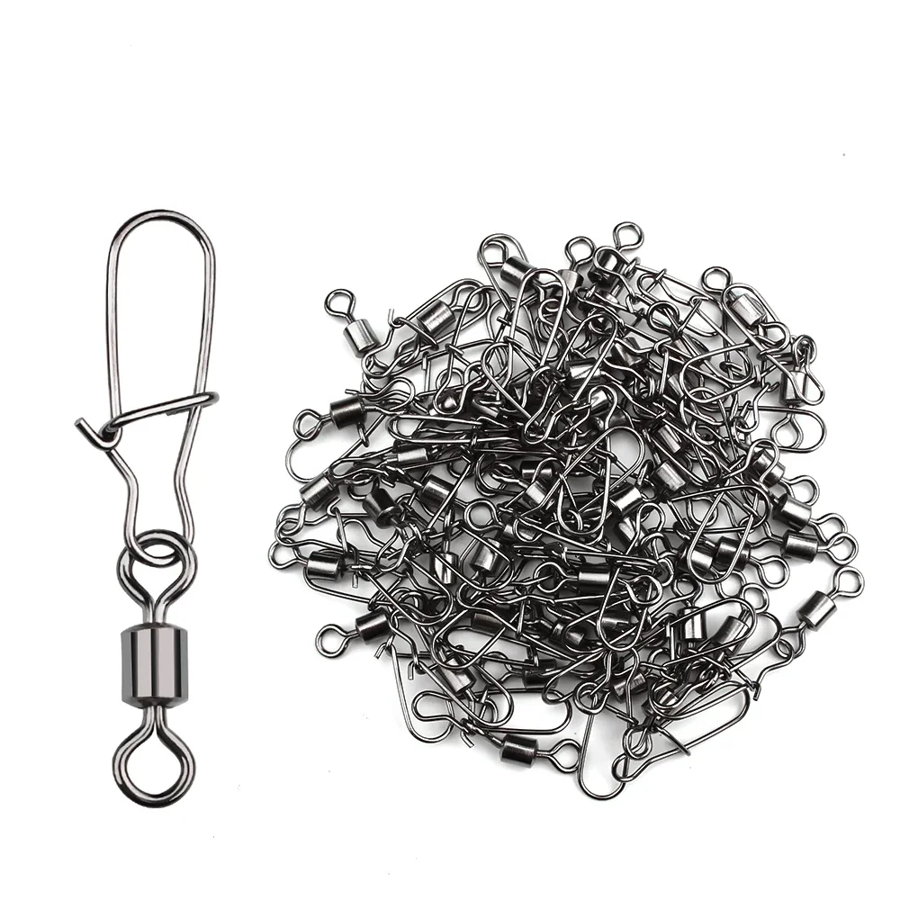 DNDYUJU 50pcs Stainless Steel Fishing Connector Pin Bearing Rolling Swivel Snap in Box Fishing Tackle Accessories For Lure Hook