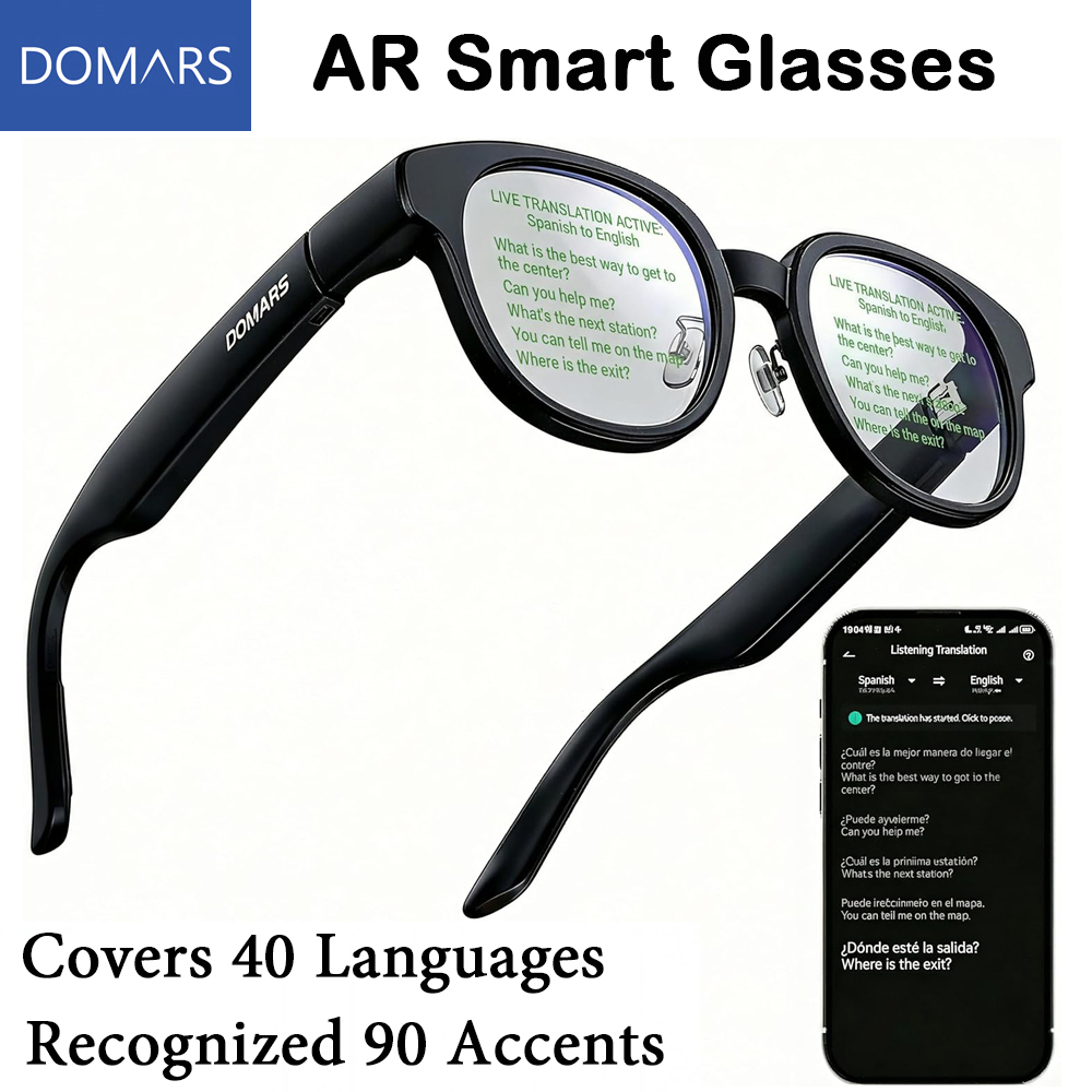 2.Supports 261 languages / Supports 90 accent types & offline translation AI glasses: Domars translation glasses supports 261 languages and automatically identifies 90 different accents. These translation glasses feature unique acoustic processing algorithms and sound crest analysis technology to accurately distinguish each sound source and its accent in multiple speakers and noisy environments. In addition, these translation glasses have an offline translation function that does not require an internet connection. Instant two-way real-time translation of 9 languages including Japanese, English, Chinese, Korean, French, etc. on airplanes, cruise ships, mountain areas, and overseas areas with no network environment. A great companion for travelers, students, hearing loss, or a reliable companion.