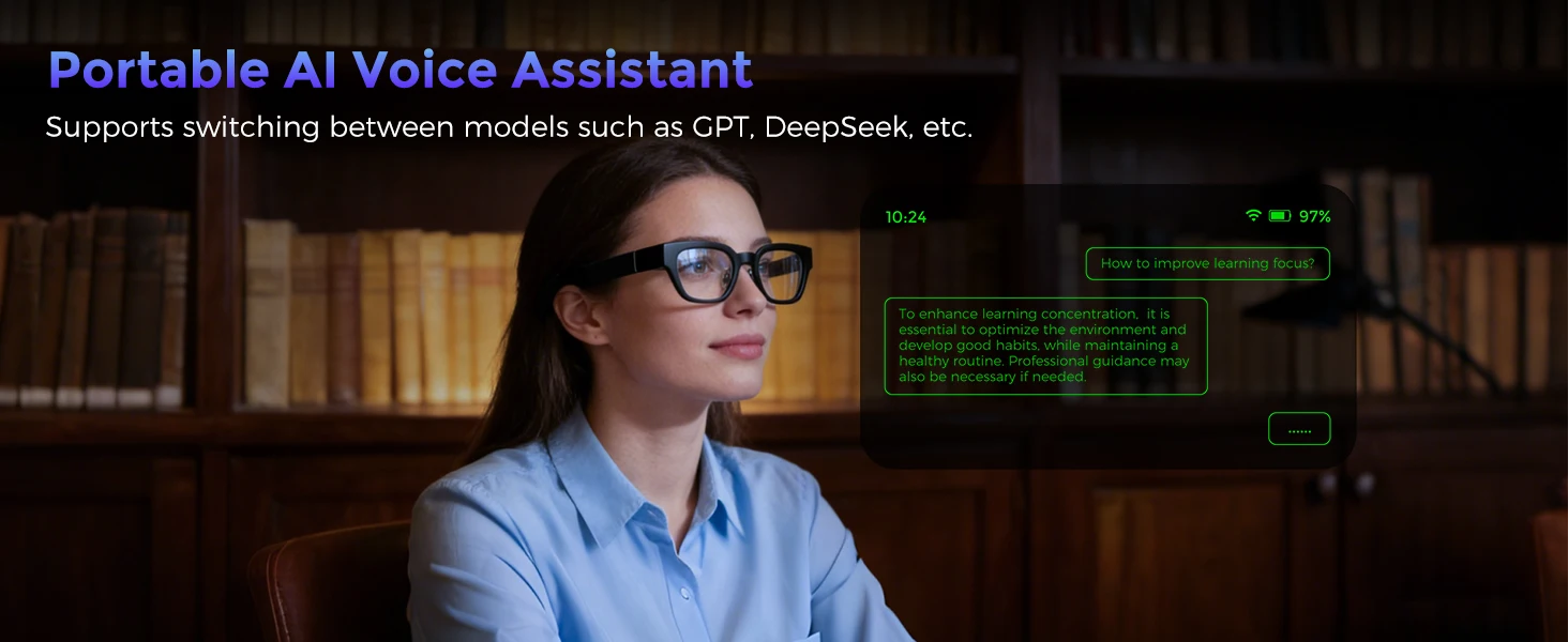 Long Battery Life Smart Glass: This AI glass has a built-in high capacity 440 mAh battery that can be used continuously for up to 12 hours when fully charged. Lasts up to 7 days on standby