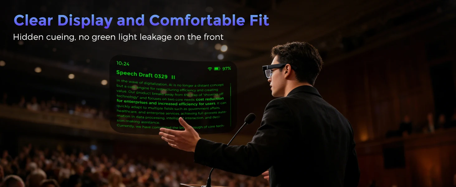 【Invisible Teleprompter for Speech, Training & Presentations】Upload your script to the app and these smart glasses for speech become an invisible AR teleprompter. Excellent for public speaking, interviews, training sessions, content creation, and professional presentations—helping you speak confidently and naturally.