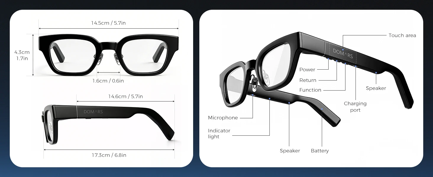 【Bluetooth Smartglasses with AI Assistant Support】Activate the built-in AI assistant with a tap to receive quick answers, reminders, and guidance displayed right on the lens. These bluetooth smart glasses work great for productivity, navigation, and hands-free information access—compatible with iPhone and Android.