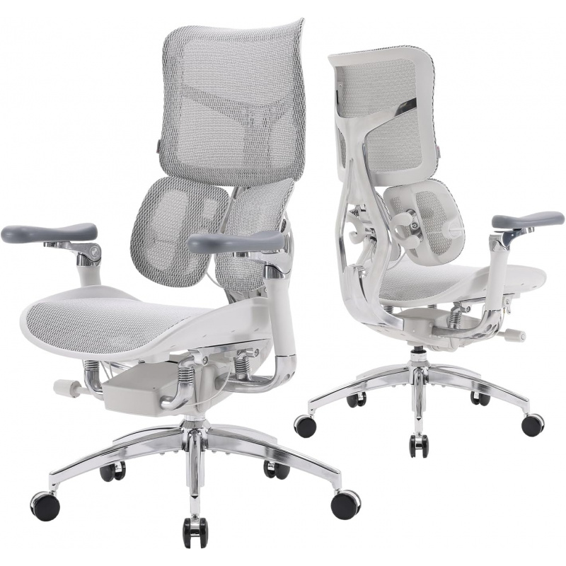 Doro S300 Ergonomic Office Chair, Computer Chair, Gaming Chair with Dual Dynamic Lumbar Support, 6D Coordinated Armrests, Adjustable Rolling Chair (White Italian Velvet Mesh)