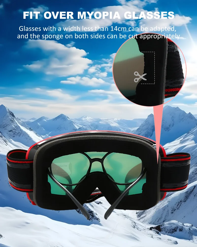 【 Ski Goggles with Over Glasses & Compatible Helmet】This ski goggles are compatible with any ski helmets. Our snow goggles are designed with cut-outs in the frame that makes these goggles fit over most glasses and allow you to wear eyeglasses inside the goggles. Perfectly suitable for adult, youth, men and women.