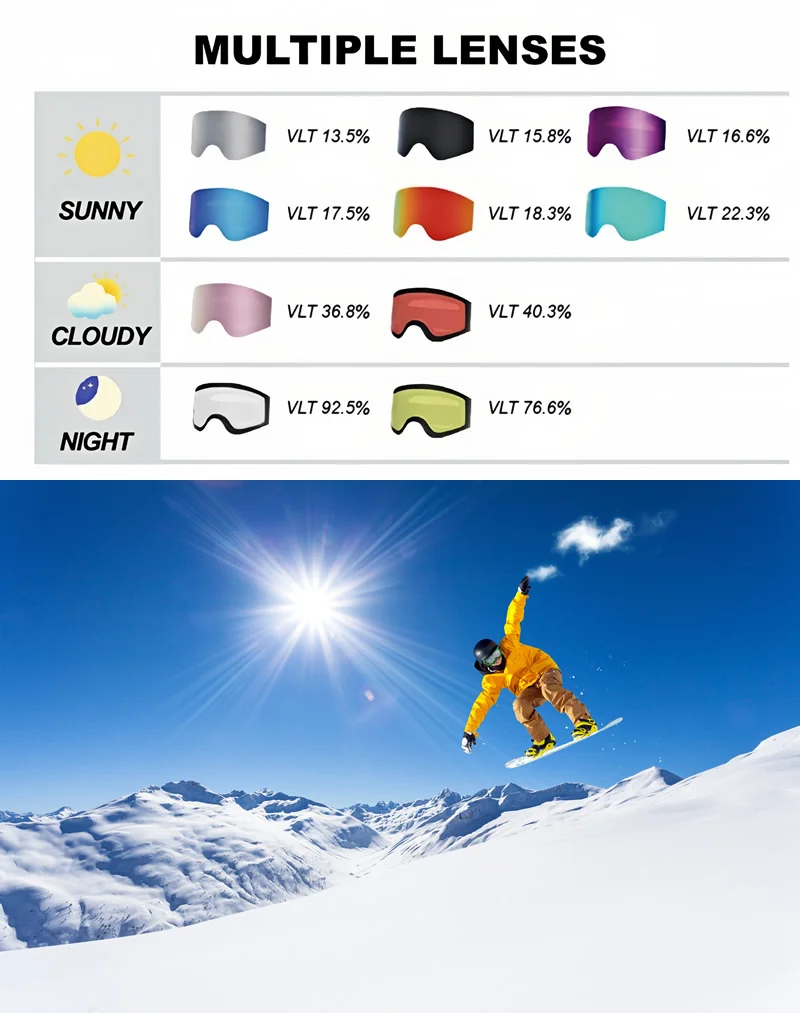 【Special Designed & Soft Safety TPU Frame】Dedicated structure fits youth and adult. Keep warm and isolate the snow and ice outside. The snowboard goggles feature a soft TPU frame that provide extra safety in case of fall or crash. Triple-layer soft breathable foam frame cover the face tightly, keep you warm and wind resistance.