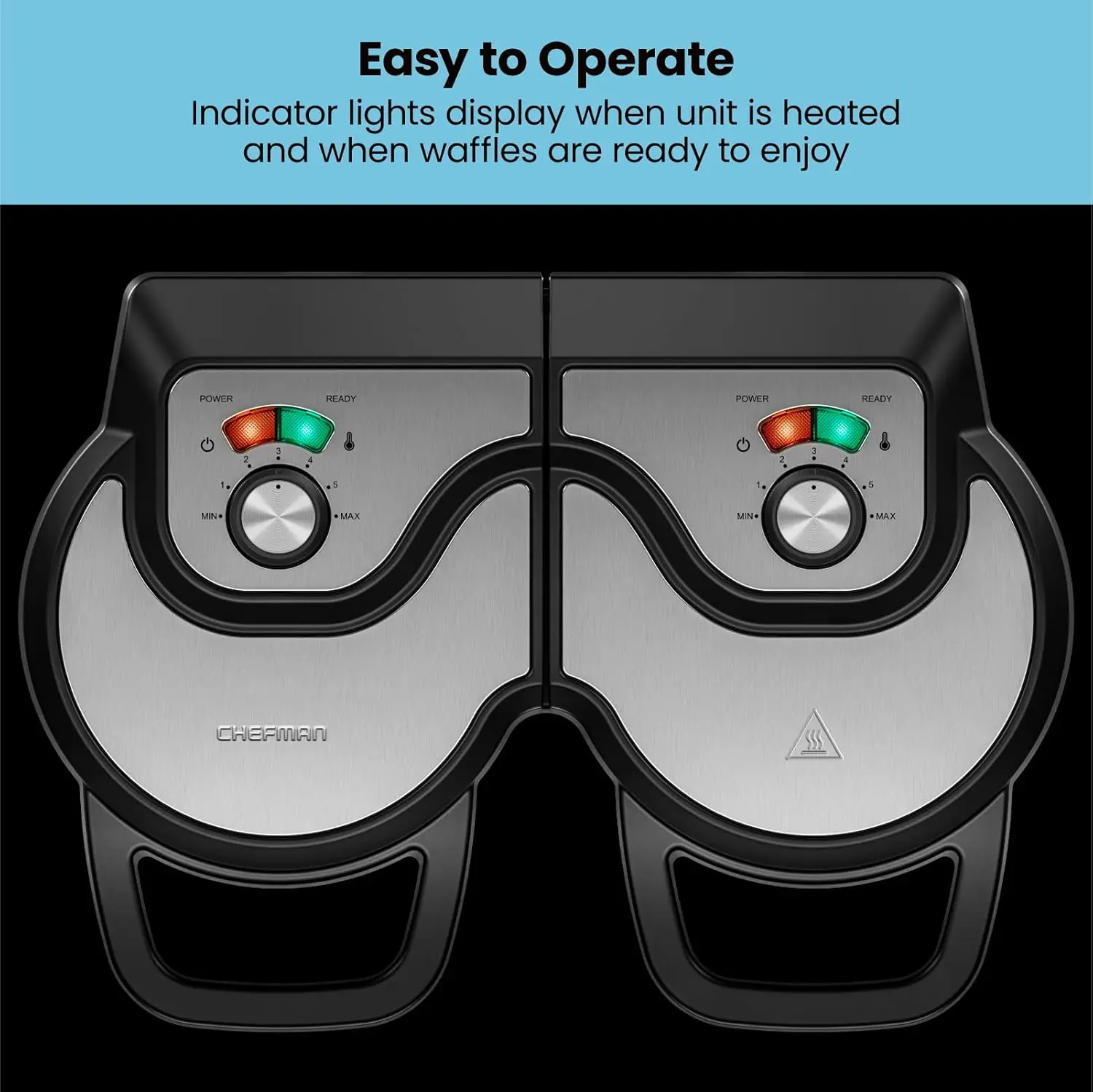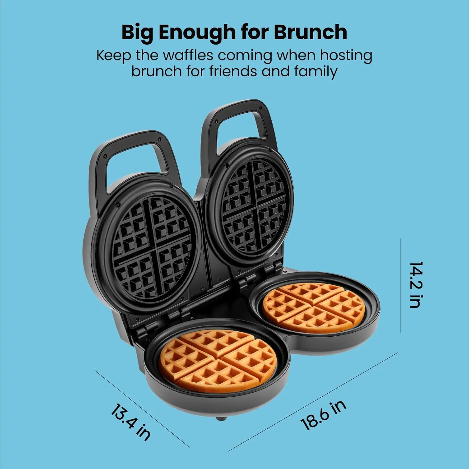- FAST AND FUN: This round waffles maker whips up two 6-Inch waffles in minutes so can enjoy breakfast for one or a big batch at brunch in no time. Make meals faster with double space to cook.