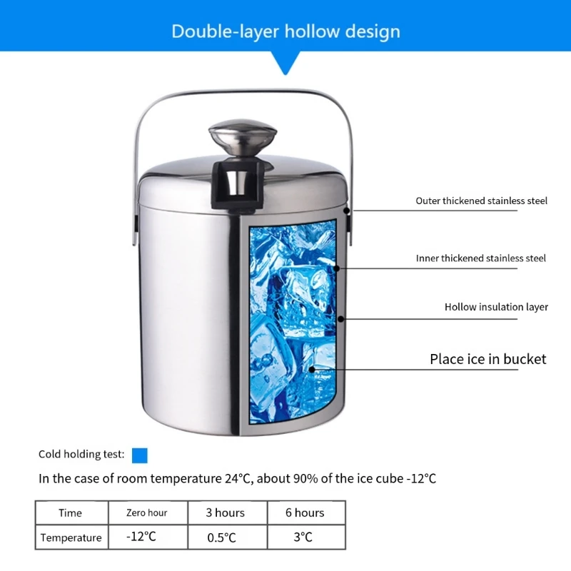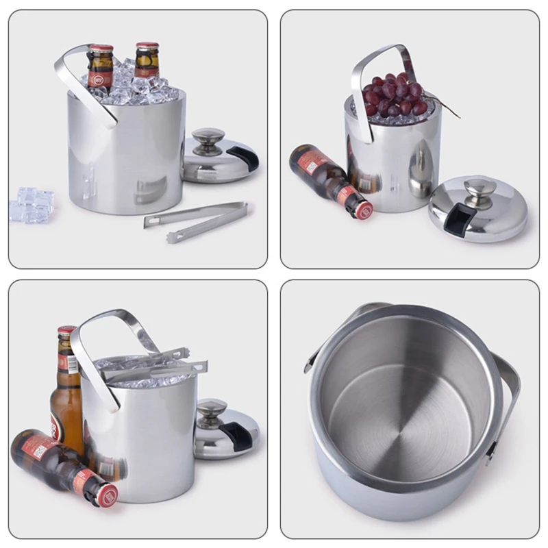 Our ice bucket is made from durable stainless steel, guaranteeing long lasting use and resistance to rust. The double walled construction effectively prevents heat transfer, keeping your drinks at the fine temperature.