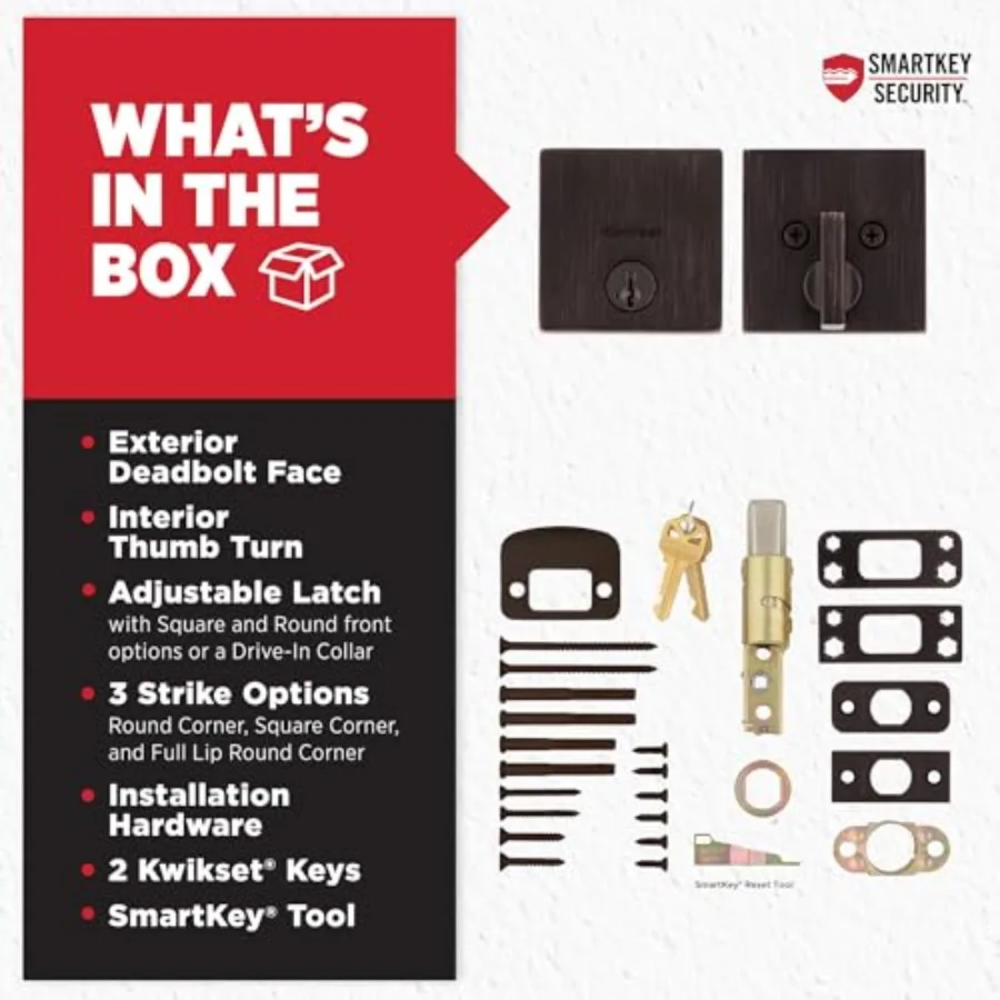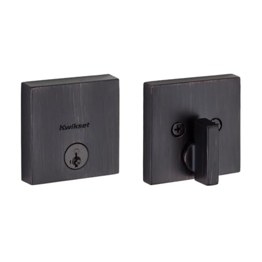 Downtown Deadbolt Lock Venetian Bronze Square Exterior Keyed Front Entry Door Pick Resistant SmartKey Rekey Security Si