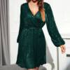 Womens Dress Deep V Neck Slim Waist Slim Mini Sequins Sexy Swing Solid Wine Party Dress