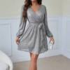 Womens Dress Deep V Neck Slim Waist Slim Mini Sequins Sexy Swing Solid Wine Party Dress