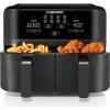 - DOUBLE THE DISHES: Air frying the healthiest, crispiest, and most flavorful food for the entire family has never been so convenient. The TurboFry Touch Dual Air Fryer has two spacious, 4.5-quart baskets so you can maximize and master mealtime. Chefman makes cooking crowd-worthy meals even easier with synced baskets and an intuitive finish-time feature.