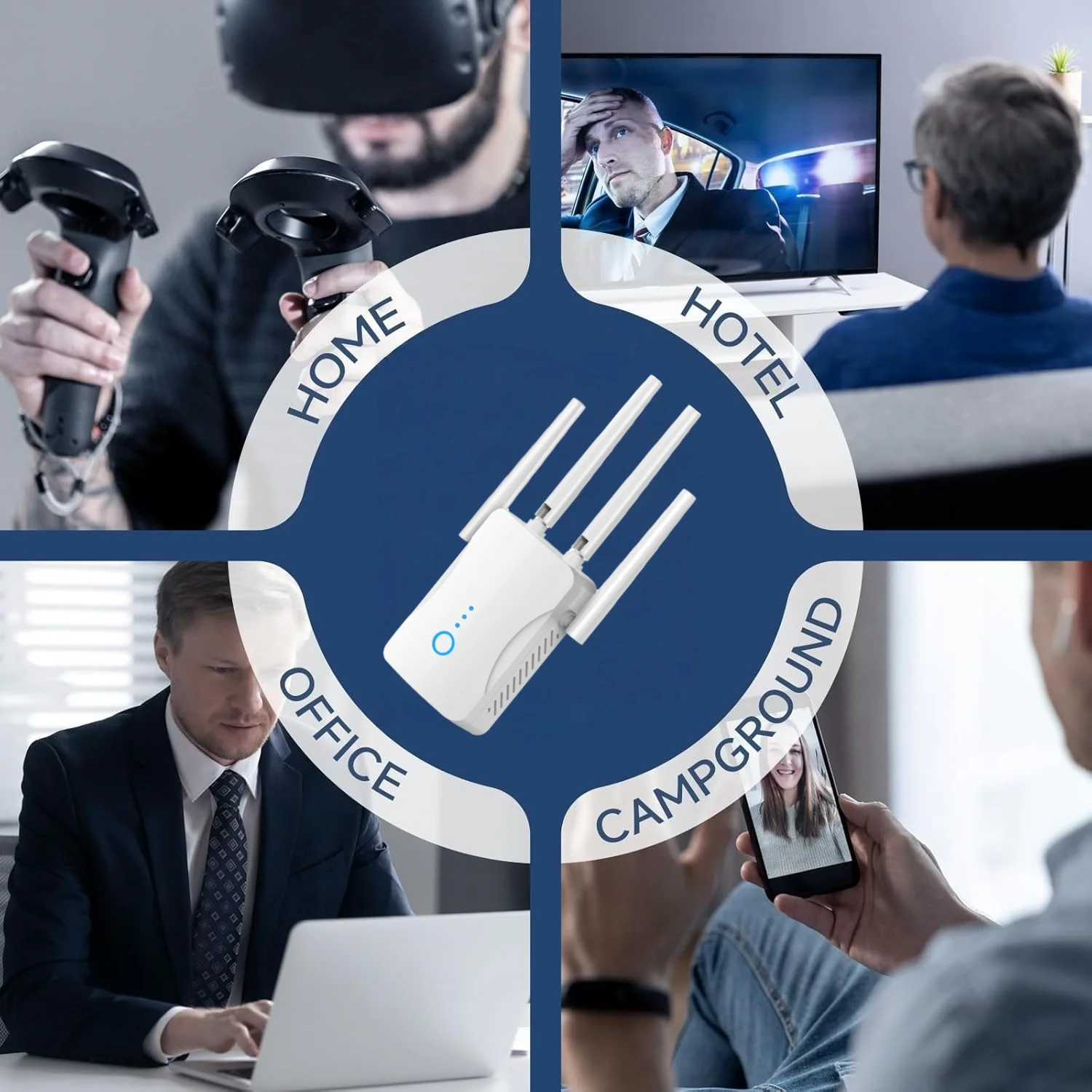 The wifi repeater is to help these devices with weak wifi signal at thelocation like kitchen, washing room, bed room, yard, garage, etc.