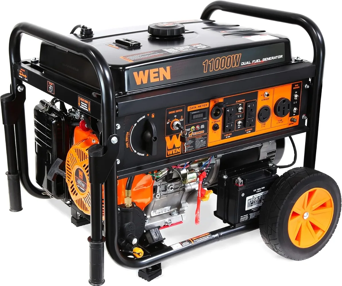 Dual Fuel Portable Generator with Wheel Kit and Electric Start , Black Suitable for Emergency Backup Power Supply