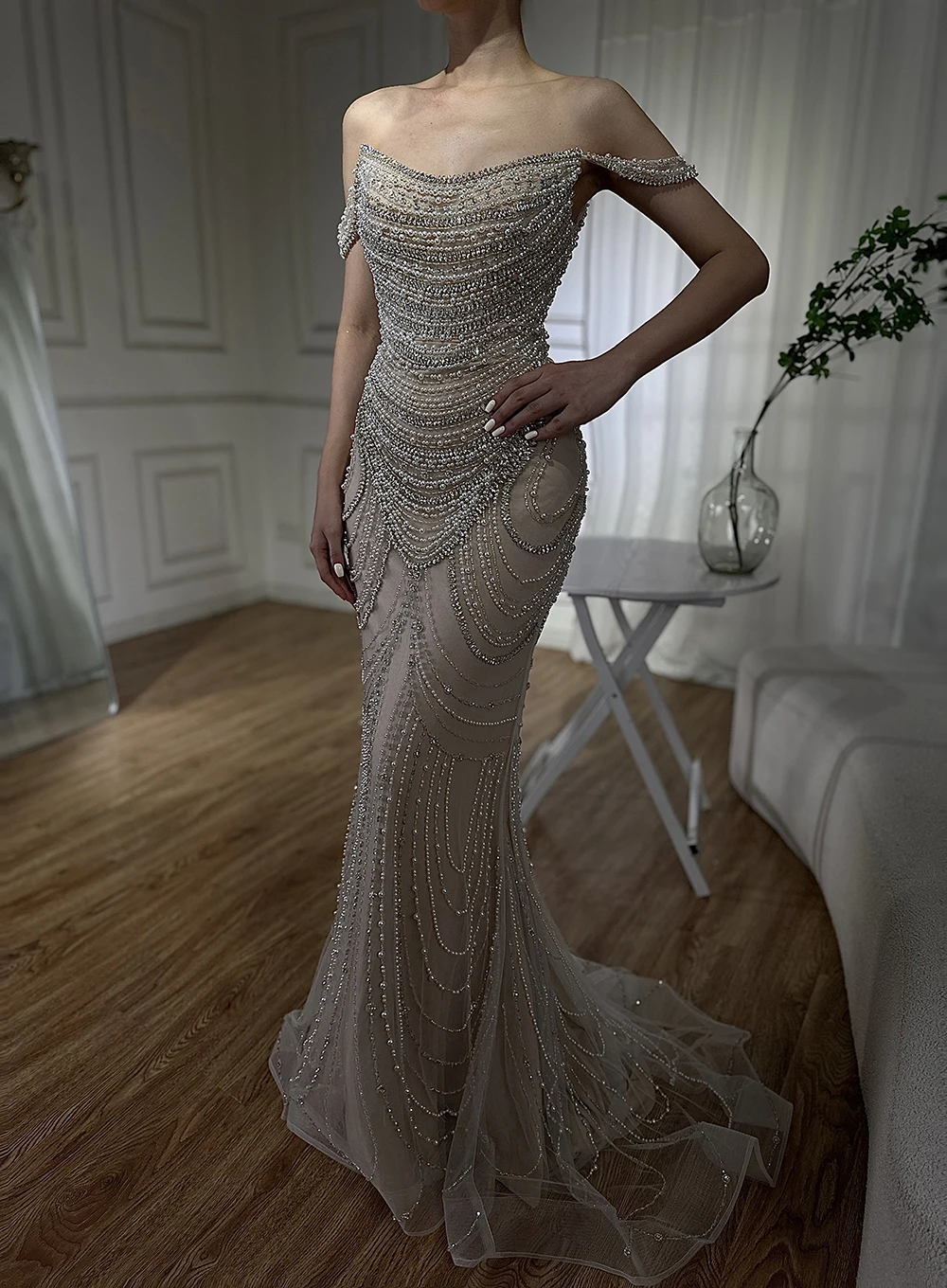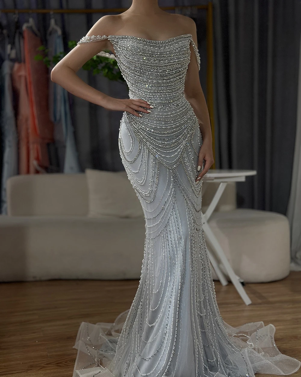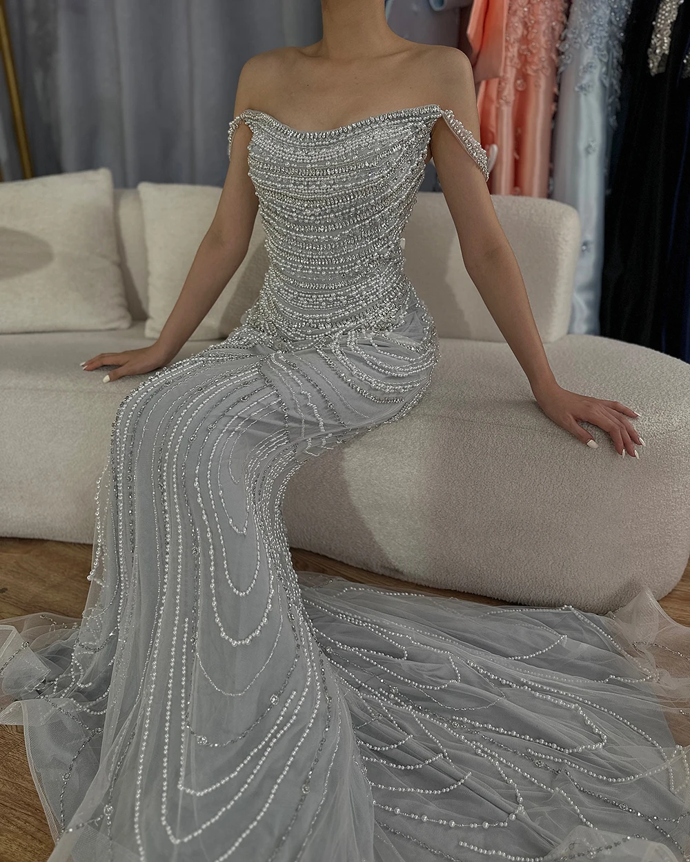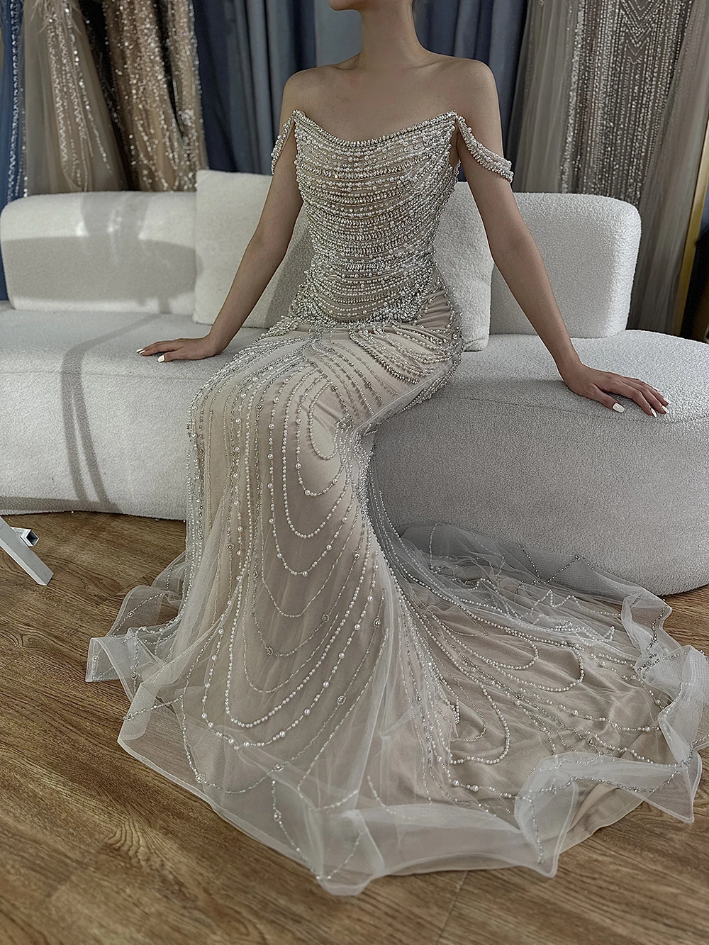 this is our designer try on the dress by herself. real dress much more beautiful