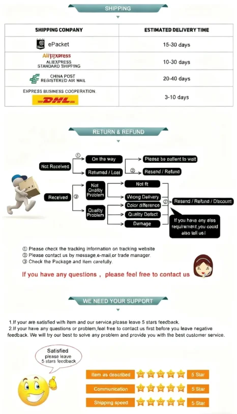 • If you did not receive the product within the guaranteed time( 45 days not including 2-5 day processing) you can request a refund or a reshipment.