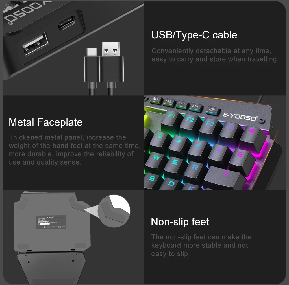 • Wired Connection :The wired connection ensures a stable and reliable connection between the keyboard and your device.
