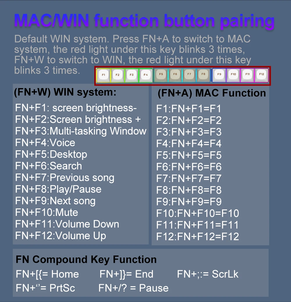 Vibrant RGB: Up to 20 presets backlighting modes are free to choose by the keyboard itself. Brightness and flowing speed is also adjustable on board. Select your own preferred modes for any playing.