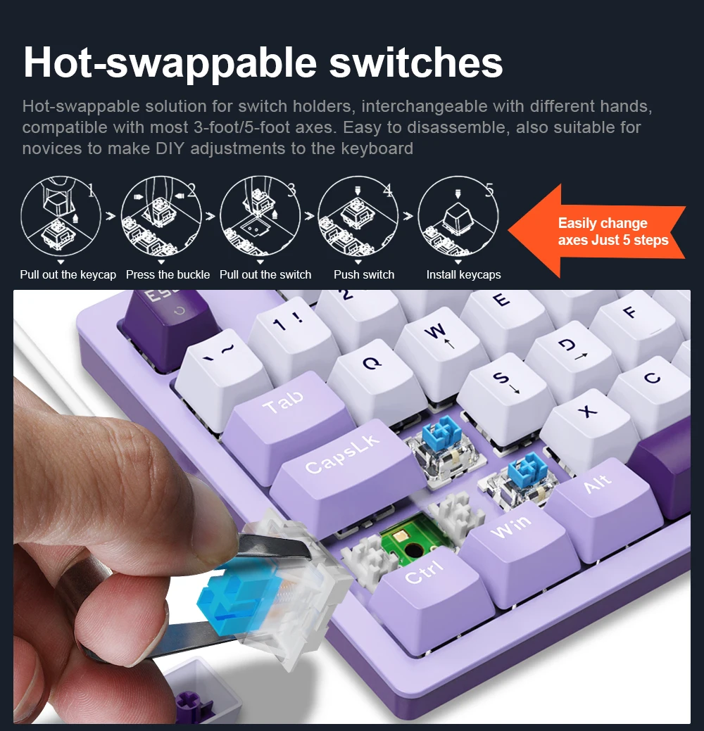 YES! TRUE HOT-SWAP – The transformative innovation with 99.8%+ switches compatible free-mod hot swappable E-YOOSO keyboard is available now.The unique exclusive structure design of the socket makes the switch mounting easier and less wobbling.