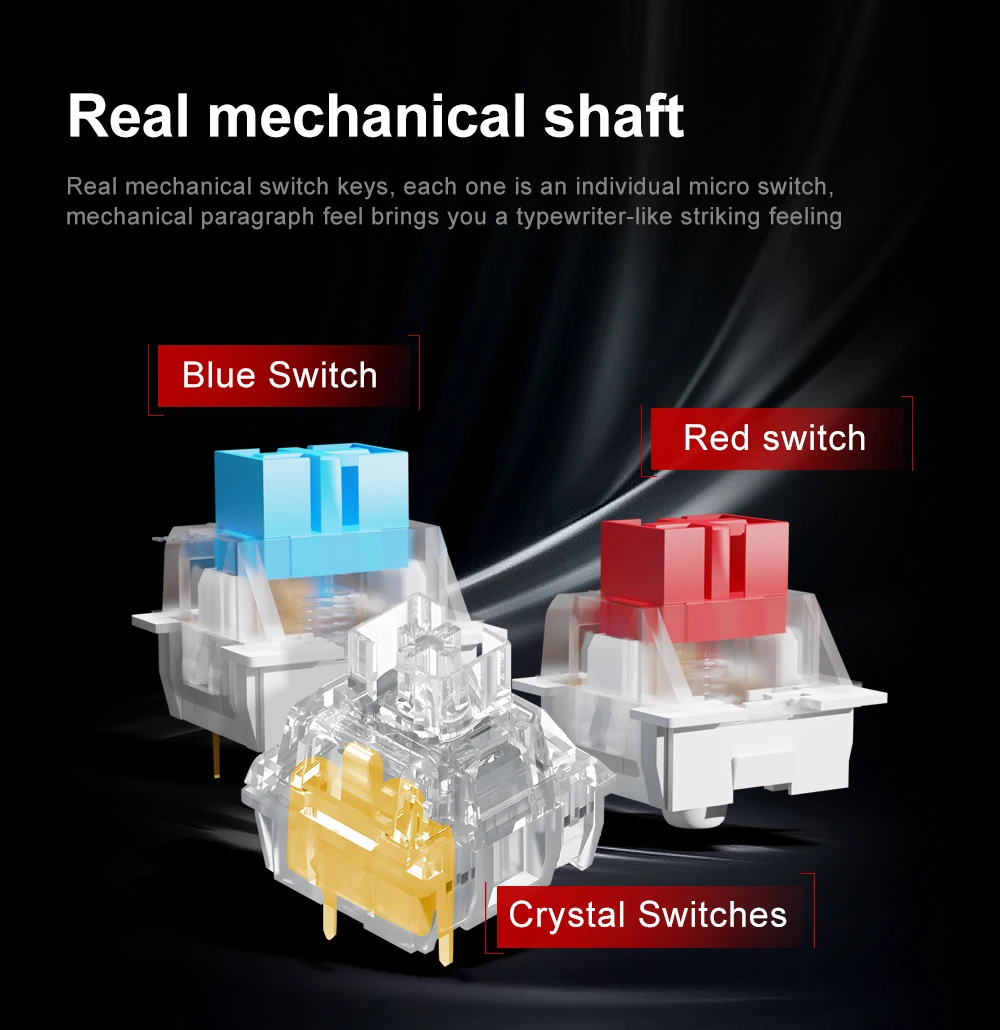Anti-ghosting 94 Keys, N-key rollover – Allowing multi-keys to work simultaneously with high speed.Each key is controlled by independent switch, let you enjoy high-grade games with fast response.