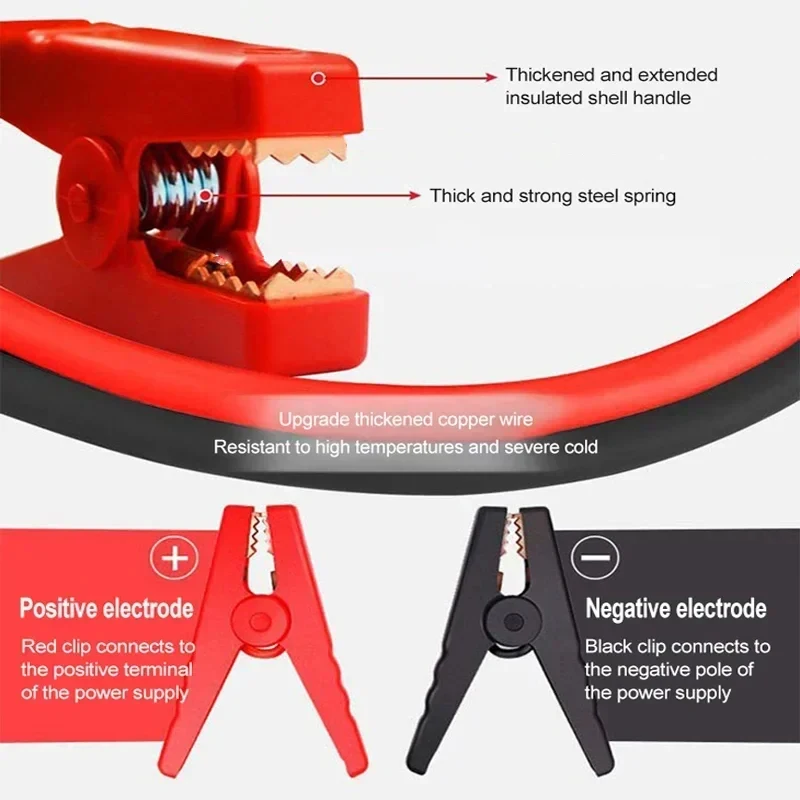 3. Start the car with ordinary clip: Check whether the blue port of the clip is inserted to the end, whether the clip touches the positive and negative poles of the battery with the largest area, and whether the clip is stable and does not shake. First, clip the positive and negative poles of the clip to the positive and negative poles of the battery On, wait 2 to 3 minutes before starting the car. This operation can reduce the load on the power supply
