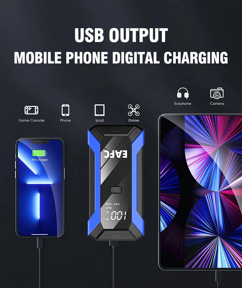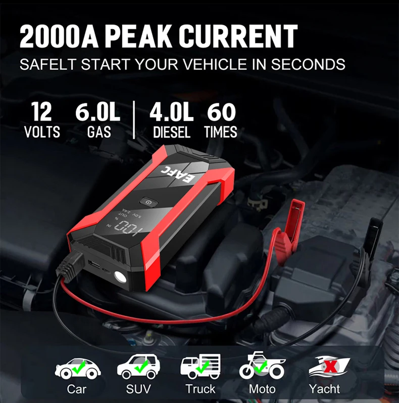 Because each car owner has a different displacement and degree of electro-oxidation, the actual starting effect shall prevail.*According to the size of the car’s displacement/year limit/car’s power loss, the effect and frequency of a full-charged emergency power supply will be different.